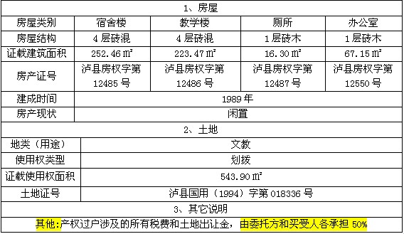 受瀘縣喻寺鎮(zhèn)人民政府委托,我公司將于2015年1月28日上午10時(shí)在瀘縣公共資源交易中心拍賣大廳公開拍賣瀘縣喻寺鎮(zhèn)廣東街(原喻寺鎮(zhèn)中心幼兒園)的房產(chǎn):